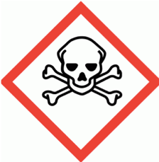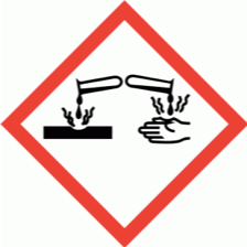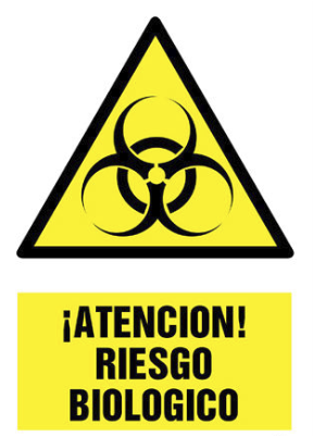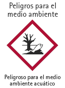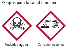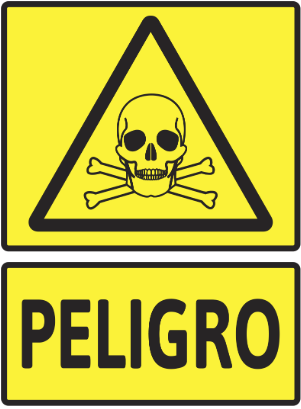 Una símbolo que especifica el riesgo y cuidado de un producto químico